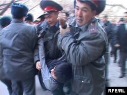 Мен айттым, "муну кантип алам, датасы жок же номуру жок болсо" деп. Ошондон эки-үч мүнөт өтпөй эле "баарыңар тизилгиле!" деген команда болуп, кармап эле машиналарга тыгып башташты. Мен ойлойм, милиция кызматкерлерине жогору жактан саясий буйрук болгон. Алардын оюнда саат тогуздарда президент келгенге чейин анын көзүнө көргөзбөй чыгарып кетиш керек болчу. Экинчиден, алар элдин көбөйүп кетишинен коркушту. Милиция кызматкерлеринин бүгүнкү жасаган ишинин баары мыйзамга каршы келет.