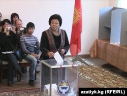 “7-апрелде кыргыз эли акыйкатсыздыкка каршы чыгып, бир күндө кулаткан мурдагы режимдин ордуна биз бүгүн жаңы бийликти түзүп жатабыз”,-деди президент Роза Отунбаева № 1216 шайлоо жайына добуш бергени келгенде.