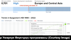 Кыргызстан 2022-жылы мурунку 118-орундан бир тепкич өйдө жылып, 0,701 упай менен 117-орунга жайгашты. Бирок бул - дүйнөлүк орточо эсеп болгон 0,739 упайдан бир аз төмөнүрөөк көрсөткүч.