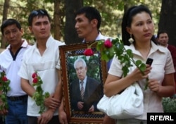 Улуу жазуучу менен коштошууга келгендер, Бишкек, 2008-жылдын 14-июну.