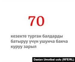Ошентип, учурда кезек күткөн балдарды бала бакча менен камсыздоо үчүн 250 орундуу 70 бала бакча куруу зарылдыгы келип чыгат.