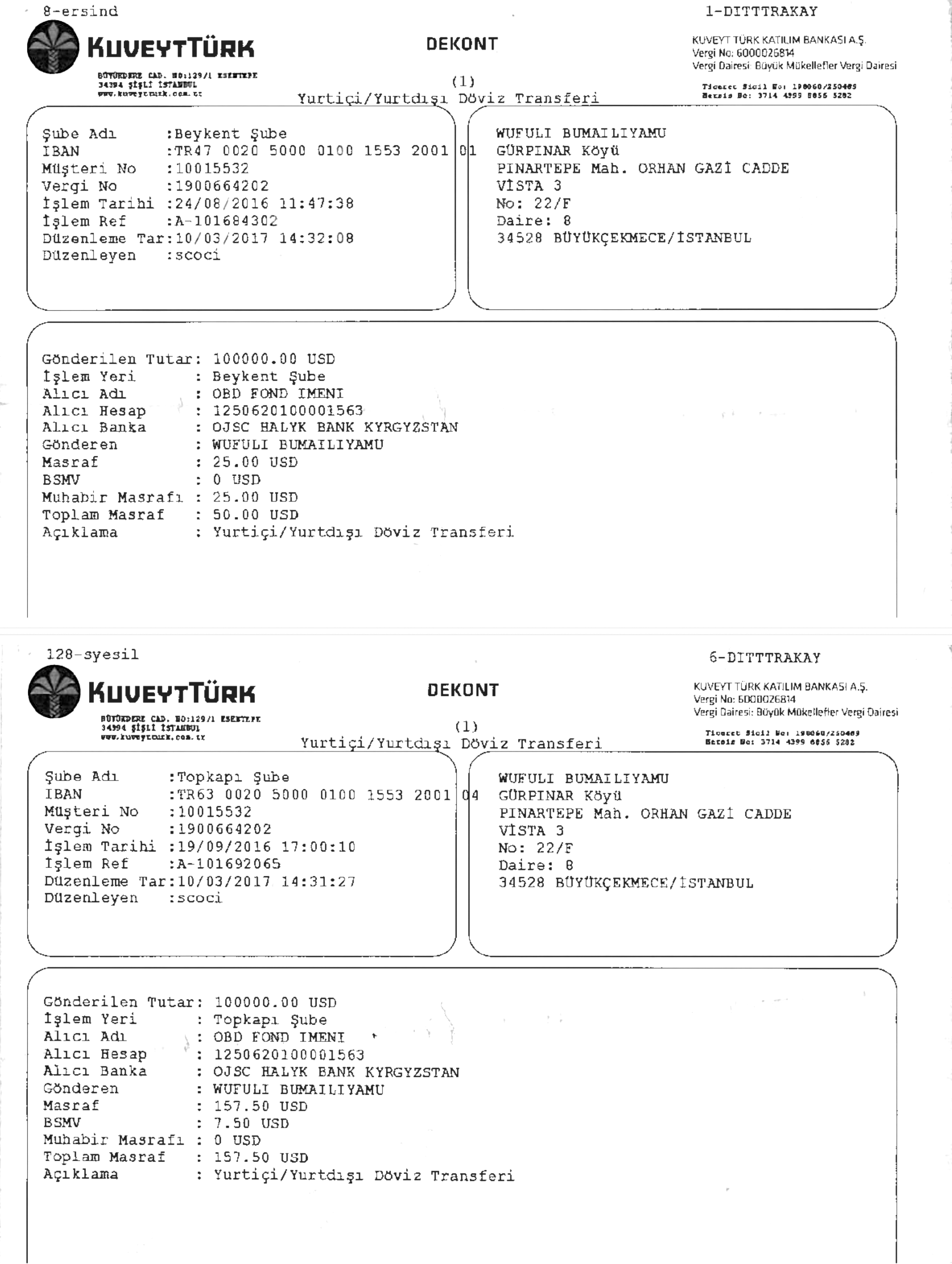 Вуфули Бумаилиямунун атынан Матраимовдордун фондуна жөнөтүлгөн каражаттардын документтин көрүү үчүн бул жерди басыңыз.