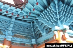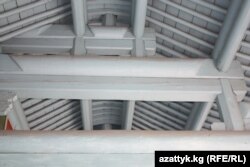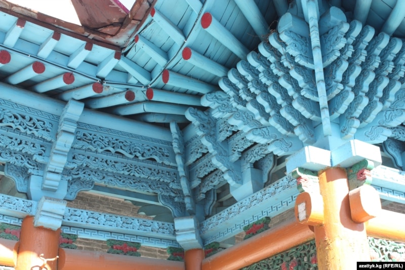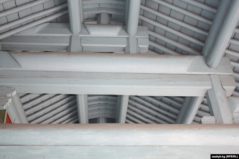 - Мечитти көрүп турасыздар, кытайлык форма менен салынган. Бир кытай устаны колунан көөрү төгүлгөн жыйырма кишиси менен алып келип (Ибрагим - ред.) салдырган экен. Карагайларын болсо биздин тоолордон эле алып келип, бутагы жогун, түзүн тандашып, кургатышып, кадимкидей тизип, анан табына келгенде аштап салышкан. Мыгы жок салынган дегендин мааниси – ашталган. Анан тамы болсо кадимки эле төө кирпичтен. Кара кирпич бар го. Самын аралаштырып жууруп, татынакай кылып куюп тургузушкан.