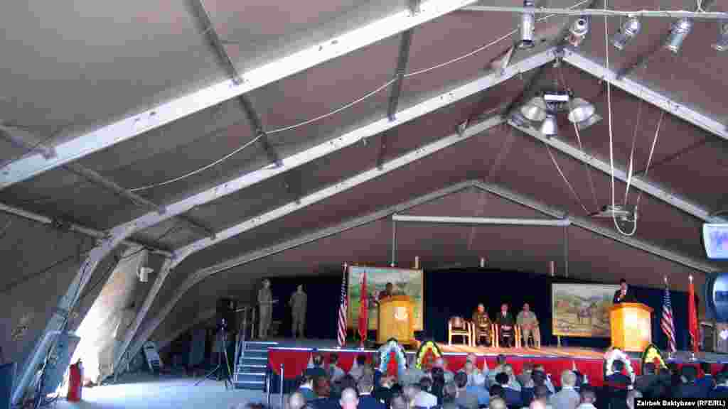 АКШнын Кыргызстандагы элчиси Памела Спратлен, Коргоо министринин биринчи орун басары Замир Суеркулов, Тышкы иштер министринин орун басары Эрнис Оторбаев жана АКШнын Транзиттик борборунун командачысы Жон Миллард.
