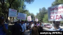 "Бийликти күч менен басып алууга аракет жасаган" деген айып менен камакка алынган жарандар тобуна Бишкектин Биринчи Май райондук сотунда бүгүн, 2-августта өкүм угузулду.
