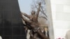 Назаркуловдун жубайы менен уулу мемориал тактайдын алдында. Бишкек. Февраль 7, 2022
